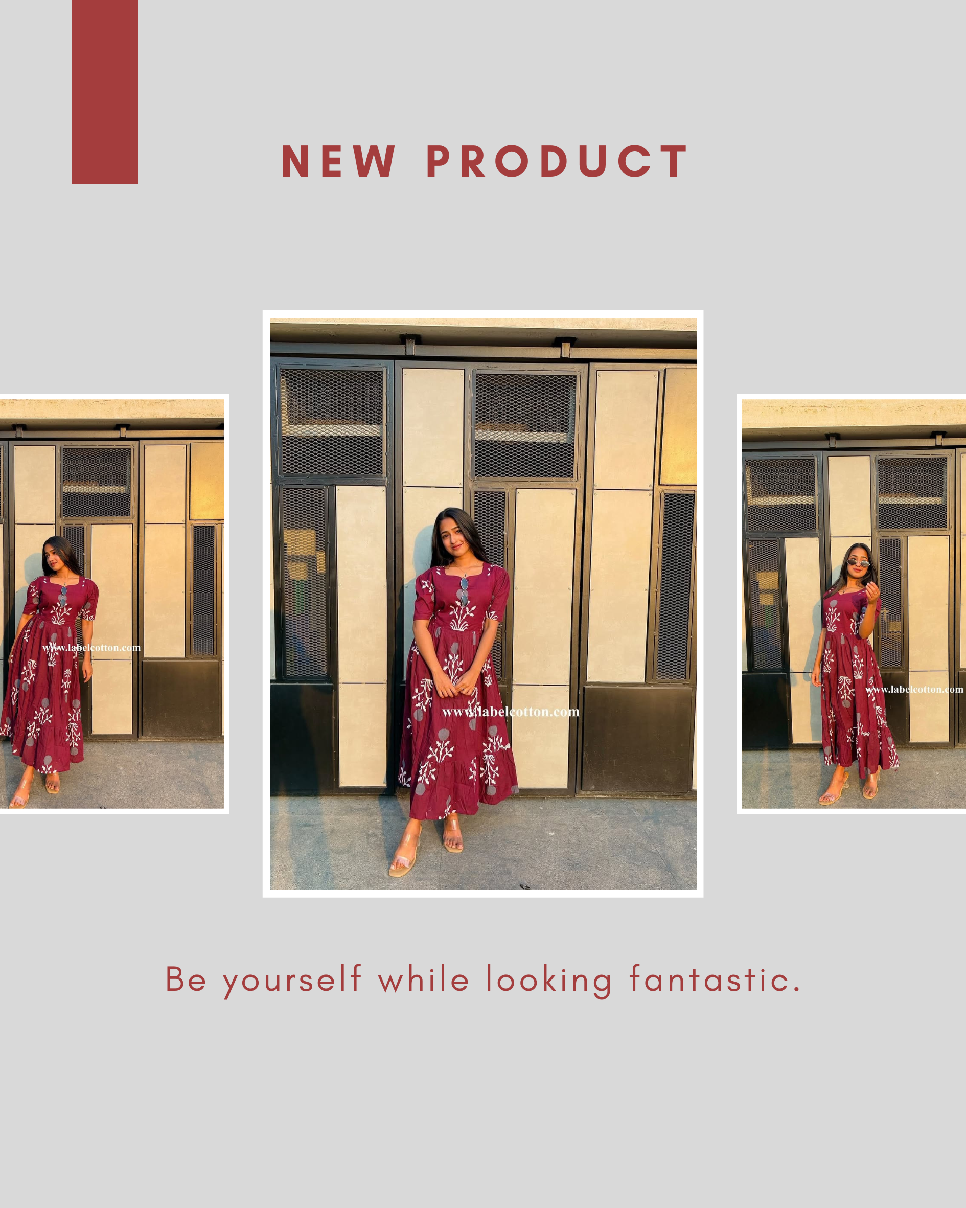 Rust Premium Dhabu Cotton Kurti Set with Applique Work & Cotton Dupatta