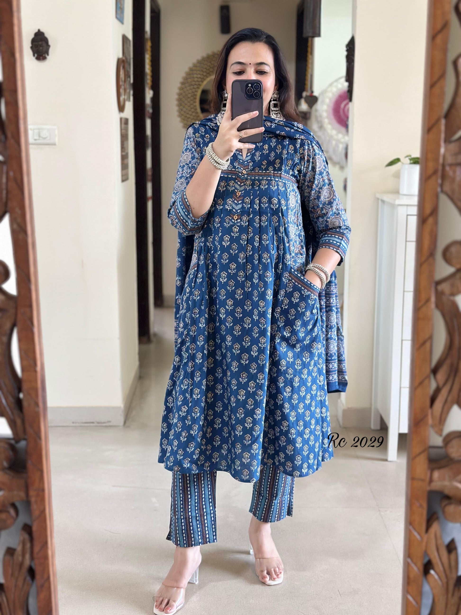 Blue Anarkali Kurta Set With Dupatta Set For Women