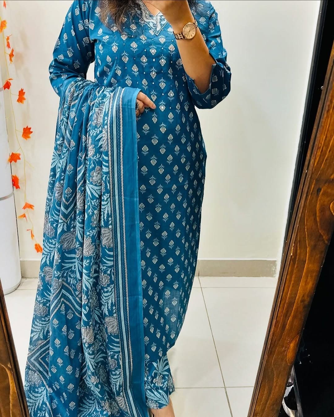 Introducing the Sky Blue Designer Azarak Printed Kurti Pant and Dupatta Set, a versatile and stylish addition to your wardrobe. Made with high-quality materials and featuring a unique Azarak print, this set is perfect for any occasion. The comfortable kurti, trendy pant, and elegant dupatta make this set a must-have for any fashion-forward individual. Elevate your look with this must-have set today.